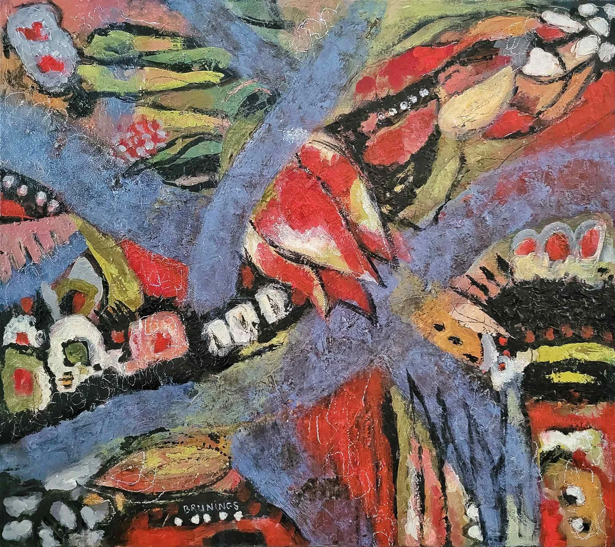 Siren Call, 2025. Acrylic on canvas — 120 x 135 x 3.8 cm.